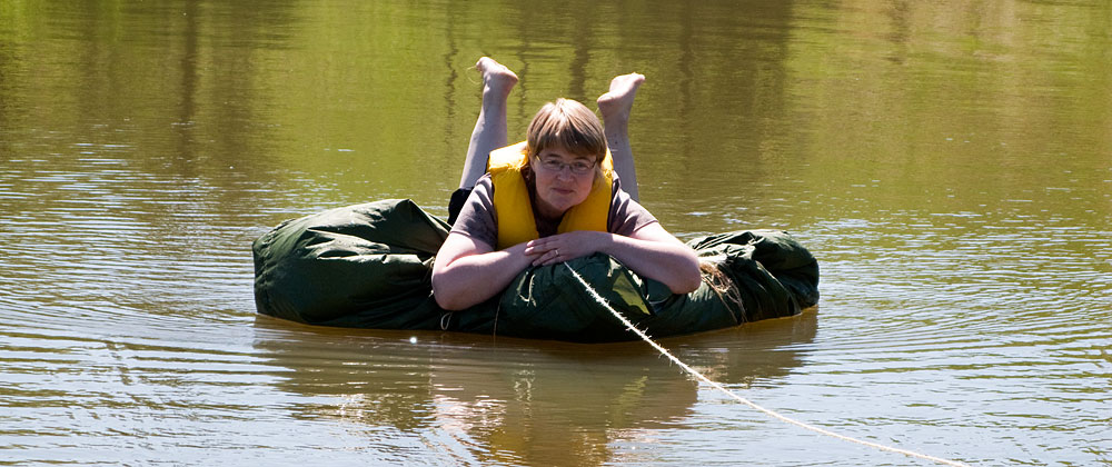 Meidän ryhmältä ylitys sujui lähes kommelluksitta. Lautta kesti koko ryhmän ylityksen eikä kukaan kaatunut lautalla. Vettä rinkkoihin oli päässyt jonkin verran, joten tositilanteessa olisi hyvin tärkeää, että rinkat on pakattu ehdottoman vesitiiviisti. Lautan tuplakangas osoittautui hyväksi, koska päällimmäiseen kerrokseen tuli repeämä sen osuessa laiturissa olevaan naulaan. Itse asiassa tavallisin ongelma rinkkalautassa, mihin olen törmännyt, liittyykin juuri tavallisten teltta- ja laavukankaiden kestävyyteen. Harkitsemisen arvoinen juttu voisi olla tehdä jostain kestävämmästä kankaasta sopivan kokoinen pressu purjerenkaineen. Se tuskin olisi mahdottoman painava ja retkellä sitä voisi käyttää myös muissakin käyttötarkoituksissa.
